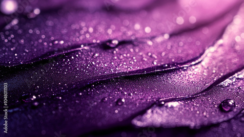 Fototapeta premium close up of purple textured surface with water droplets creates mesmerizing and abstract visual. shimmering light enhances rich, vibrant hues, adding depth and intrigue