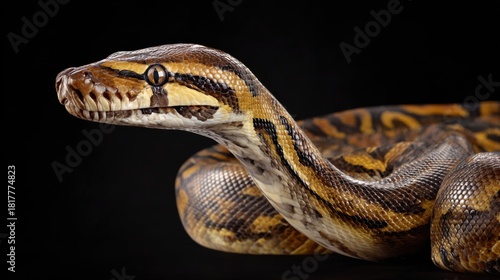 © Thinnawat, Obraz premium Close-Up of Python With Striking Scale Patterns on Dark Background