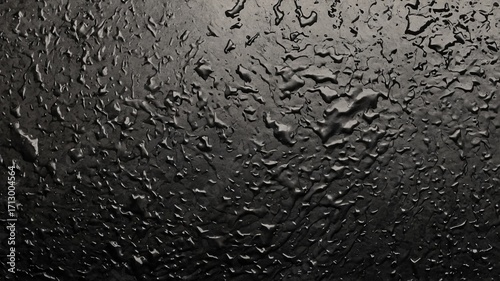 Fototapeta premium Close-up of raindrops on glass, creating a textured and moody atmosphere.