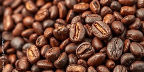 Naklejka premium Close-up of raw cocoa beans, rich brown hues, textured surface, cacao beans,...