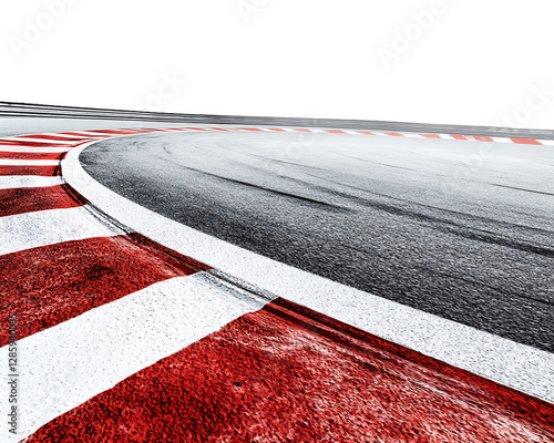 © CrystallineCreative, Obraz premium Close Up of Red and White Curb on Asphalt Racetrack with Transparent Background