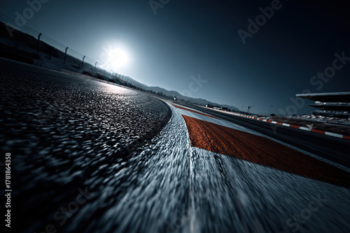 © Vovmar, Fototapeta premium Close-up of red and white curb on race track.