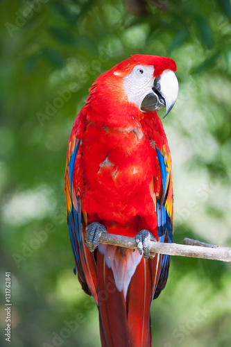 © Natalia Bratslavsky, Fototapeta premium Close up of red ara parrot head in tropical habitat