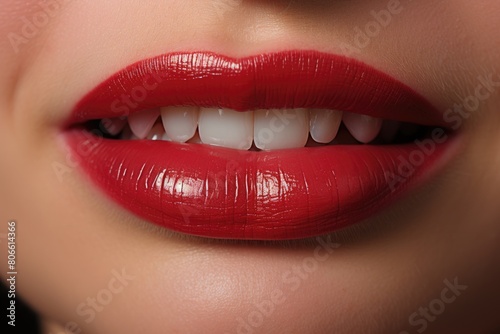 Obraz premium Close-up of Red Lips and White Teeth Smiling