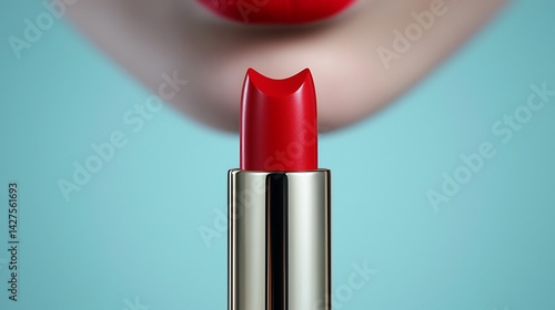 Obraz premium Close Up of Red Lipstick and Lips Against a Teal Background