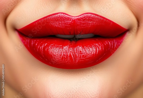 Obraz premium Close-up of red lipstick on full lips, sensual, kissable, macro, sexy