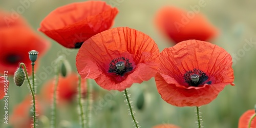 © Thanthara, Obraz premium close up of red poppy flowers in a field