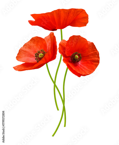 © Nitr, Fototapeta premium close up of red poppy flowers isolated on transparent background
