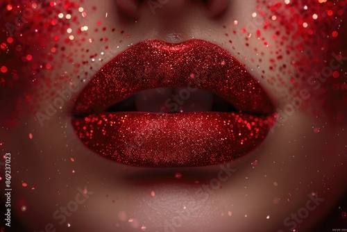 Obraz premium Close up of red shiny lips