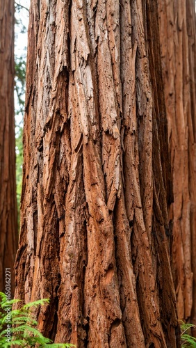Obraz premium Close-up of redwood tree bark, showing texture and color variations