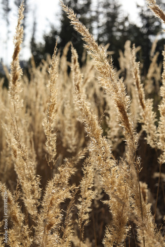 © gabriela, Fototapeta premium Close up of reed grass in the meadow. Selective focus.