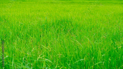 © ภัคจีรา เสียงใส, Obraz premium Close-up of rice seedlings growing in the fields. View of Young rice sprout ready to growing in the rice field