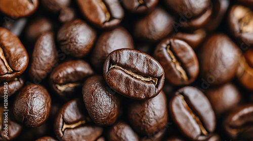 Fototapeta premium Close-up of rich, dark coffee beans showcasing their texture and sheen,...