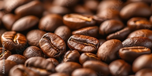 Naklejka premium Close-up of rich, roasted coffee beans. Perfect for showcasing the textures...