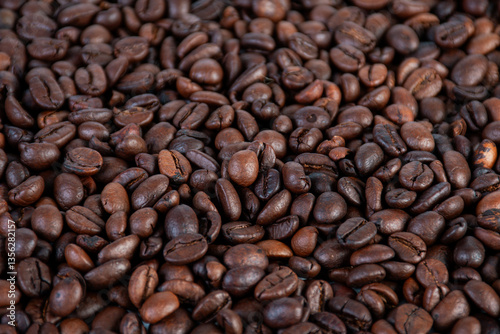 Obraz premium Close-up of roasted Arabica coffee beans