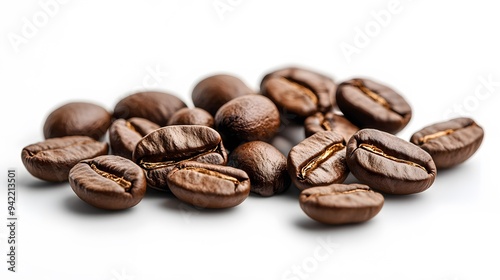 © Lokithi Stock, Obraz premium Close-up of roasted coffee beans arranged on a clean white background