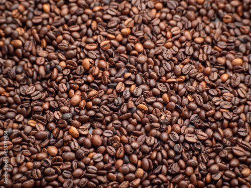 © Jakob, Fototapeta premium Close-up of roasted coffee beans. Background from Coffee beans.