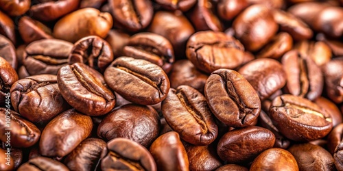 Naklejka premium Close-up of roasted coffee beans , caffeine, aroma, dark roast, espresso, organic, whole bean, barista, morning