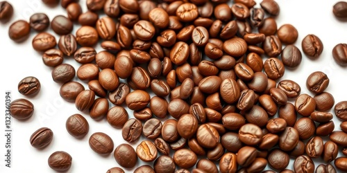 Fototapeta premium Close-up of roasted coffee beans isolated on pure white background, white background, breakfast