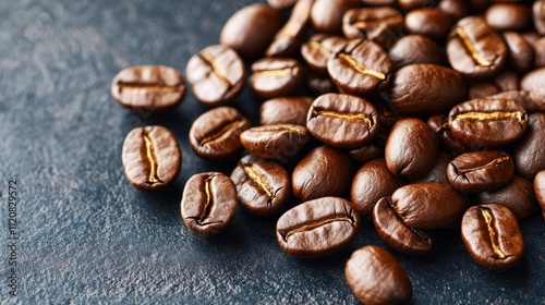 Naklejka premium Close-Up of Roasted Coffee Beans on Dark Surface for Cafe Design