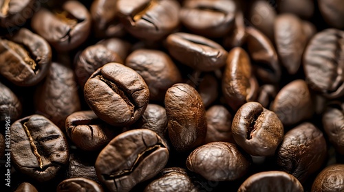 Naklejka premium Close-up of roasted coffee beans. Perfect for coffee shops or beverage...