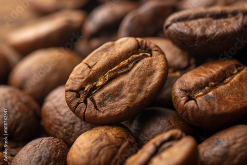 © KuloRoni, Naklejka premium Close-up of Roasted Coffee Beans Pile