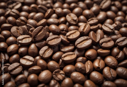 © Lied, Naklejka premium Close-up of roasted coffee beans, with their rich brown color and textured surfaces filling the frame