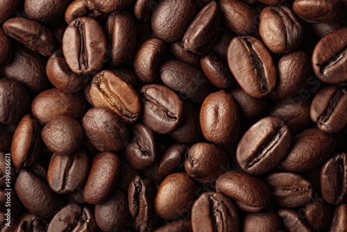 © Sahal, Naklejka premium Close Up of Roasted Dark Brown Coffee Beans Texture