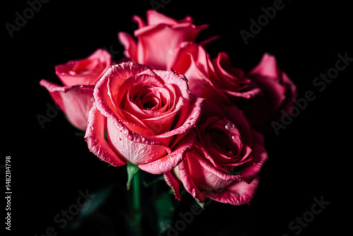 Fototapeta premium Close-up of Romantic Pink Roses with Water Drops