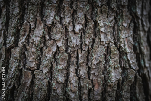 © jockermax3d, Fototapeta premium Close up of rough tree bark texture with moss