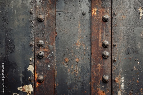 © ibhonk, Fototapeta premium Close-up of Rusted Metal with Rivets and Flaking Paint