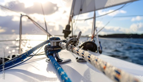 © fidal, Fototapeta premium Close-up of sailboat rigging