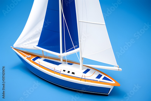 Obraz premium Close-up Of Sailboat Toy Over Blue Background