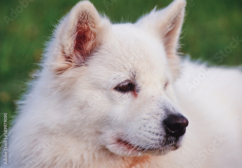 © SuperStock, Fototapeta premium Close up of Samoyed in grass