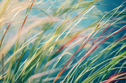 © Татьяна Евдокимова, Obraz premium Close up of seagrass swaying gently in the current of a restored coastal habitat, showcasing its vibrant colors and delicate movement