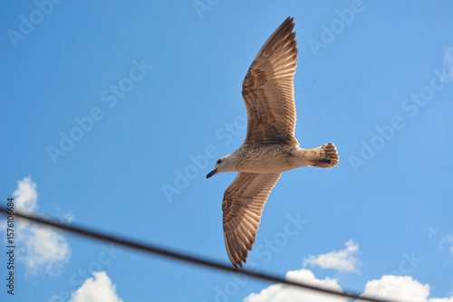 © Bintan, Obraz premium Close-up of seagull flying in the blue sky