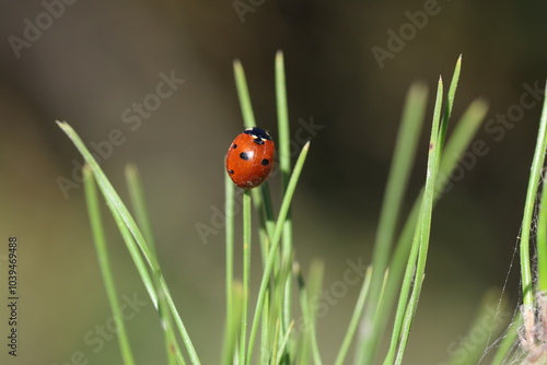© UMIT, Fototapeta premium close up of seven spotted ladybug