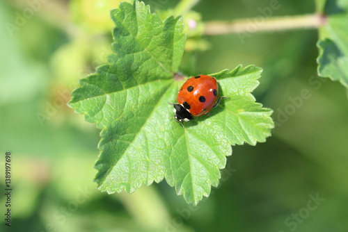 Fototapeta premium close up of seven spotted ladybug
