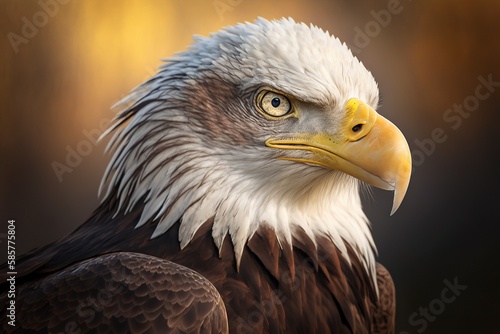 © Digital Dreamscape, Fototapeta premium Close-up of Sharp Beak and Piercing Eyes, Capturing the Intensity of the Bald Eagle by Generative AI