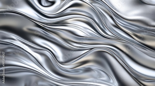 Obraz premium Close-up of shimmering silver fabric, showcasing elegant waves and reflections.