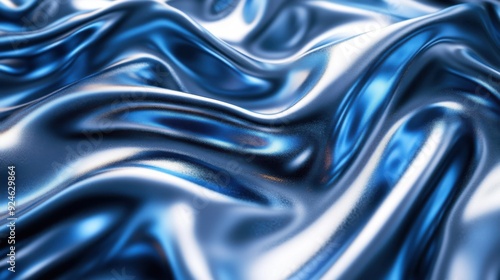 Obraz premium Close-Up of Shiny Blue Metallic Fabric with Elegant Ripples