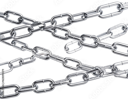 © Stocksource, Obraz premium Close up of shiny steel chains isolated on white background