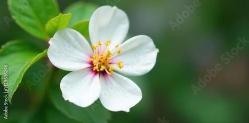 © jarin, Fototapeta premium Close-up of single blackberry flower, pure white petals , close up, plant, blackberry flower