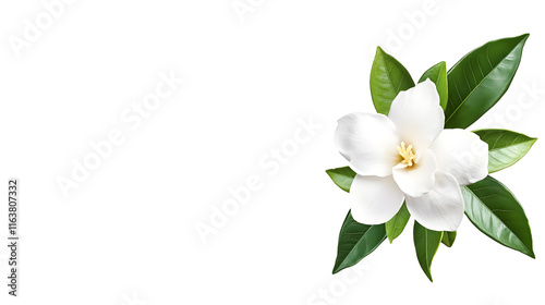 © ChaokuayOfficial, Obraz premium close up of single gardenia bloom with pristine white petals and lush green leaves, evoking sense of tranquility and beauty