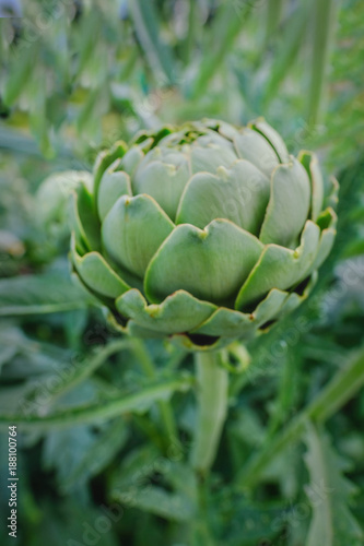 © jeancuomo, Obraz premium Close up of single globe artichoke vegetable growing naturally.