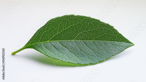 © Alpukat, Obraz premium Close-up of single green leaf on white background