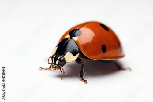 © Katriya, Fototapeta premium Close-up of single ladybug on white background, pattern, design