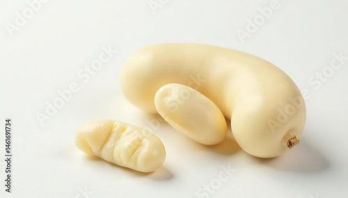 © Sathaporn Buarabut, Fototapeta premium Close-up of single white bean against white backdrop, studio, kitchen, texture