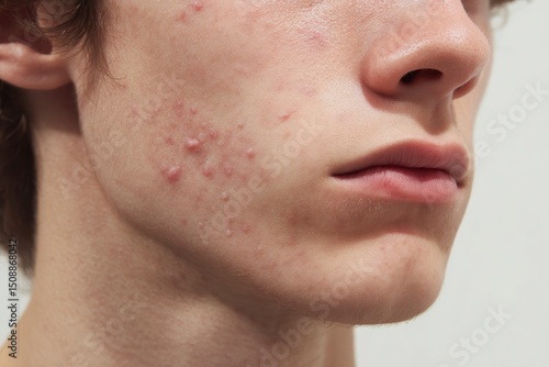 © Watie2781, Fototapeta premium Close-up of skin with acne on young male face expressing concern
