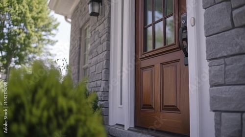 © Sawat, Fototapeta premium Close-up of smart door lock with keypad and fingerprint scanner installed on front door